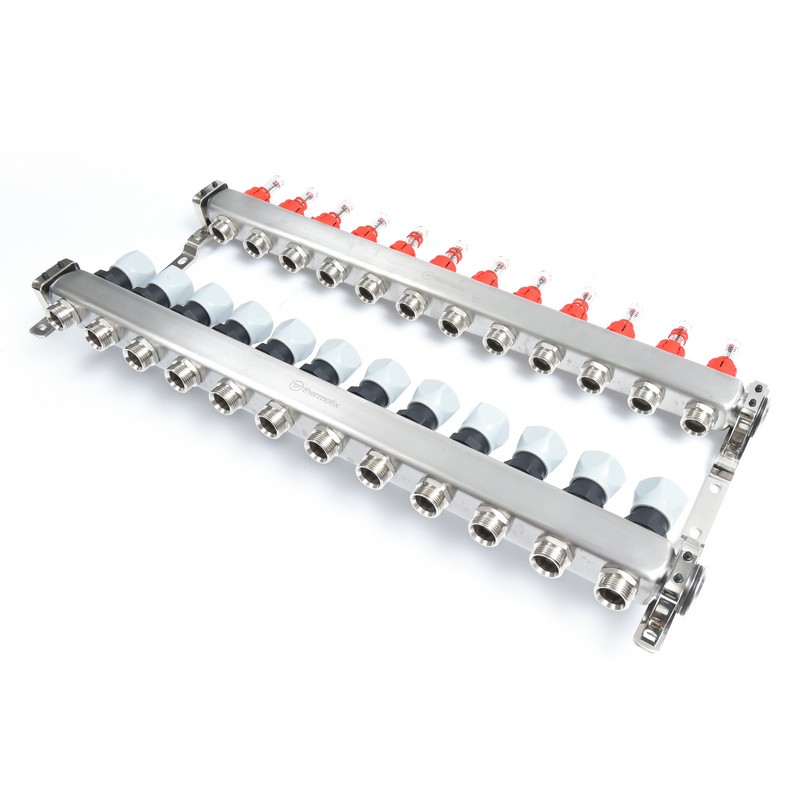 Коллекторные группы используются в системах водоснабжения, водяного радиаторного или напольного отопления для распределения и регулирования рабочей среды в системе.