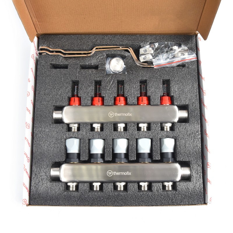 Каждая из труб системы подключается к коллектору, что позволяет контролировать поток теплоносителя индивидуально в каждом циркуляционном контуре.