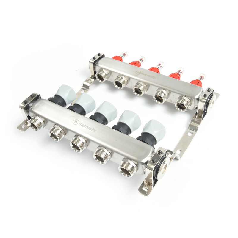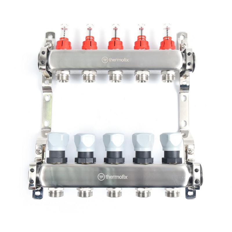 Коллекторный блок из нерж. стали с расходомерами 1"x3/4" 5 выходов