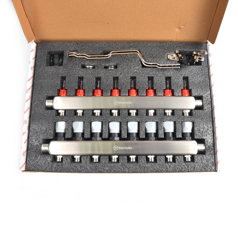 Каждая из труб системы подключается к коллектору, что позволяет контролировать поток теплоносителя индивидуально в каждом циркуляционном контуре.
