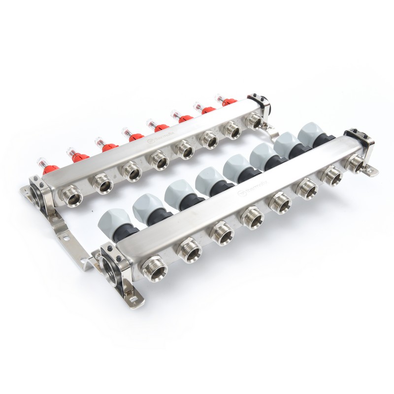 Коллекторные группы используются в системах водоснабжения, водяного радиаторного или напольного отопления для распределения и регулирования рабочей среды в системе.