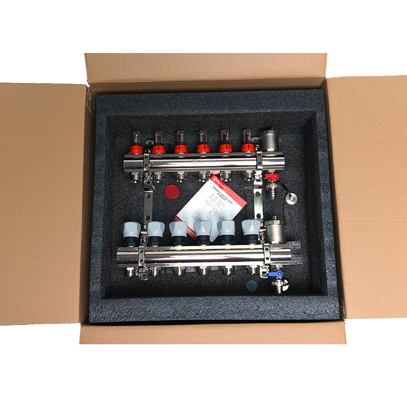 Каждая из труб системы подключается к коллектору, что позволяет контролировать поток теплоносителя индивидуально в каждом циркуляционном контуре.