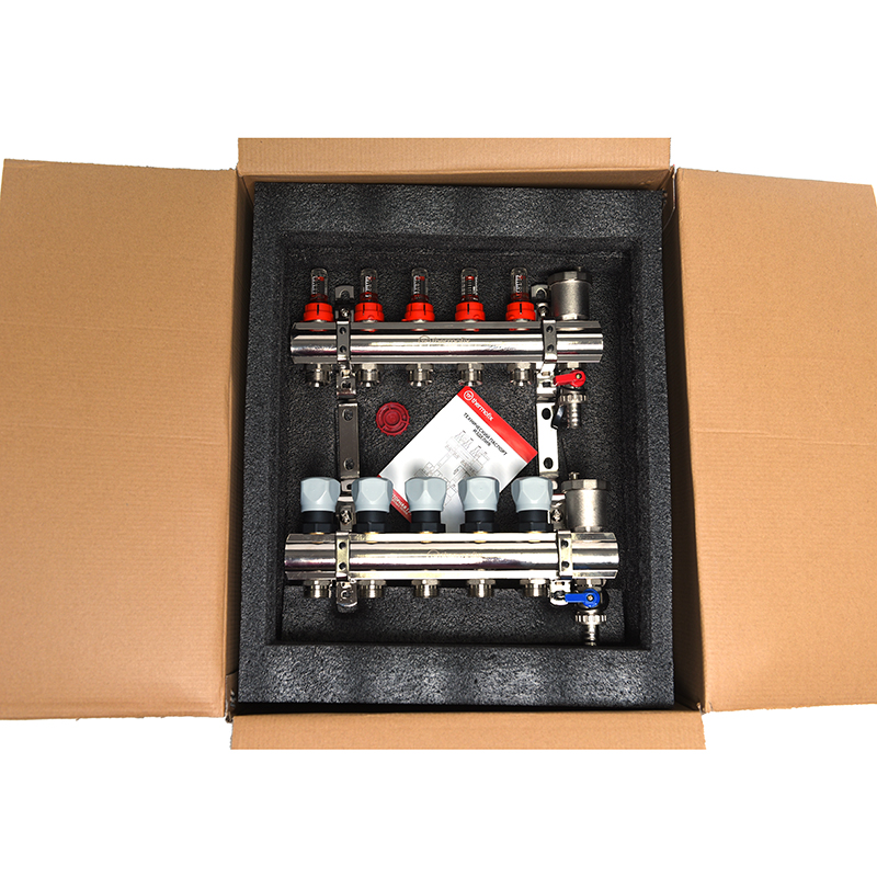 Коллекторный блок из латуни с расходомерами 1"x3/4" 5 выходов