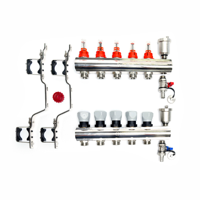 Каждая из труб системы подключается к коллектору, что позволяет контролировать поток теплоносителя индивидуально в каждом циркуляционном контуре.