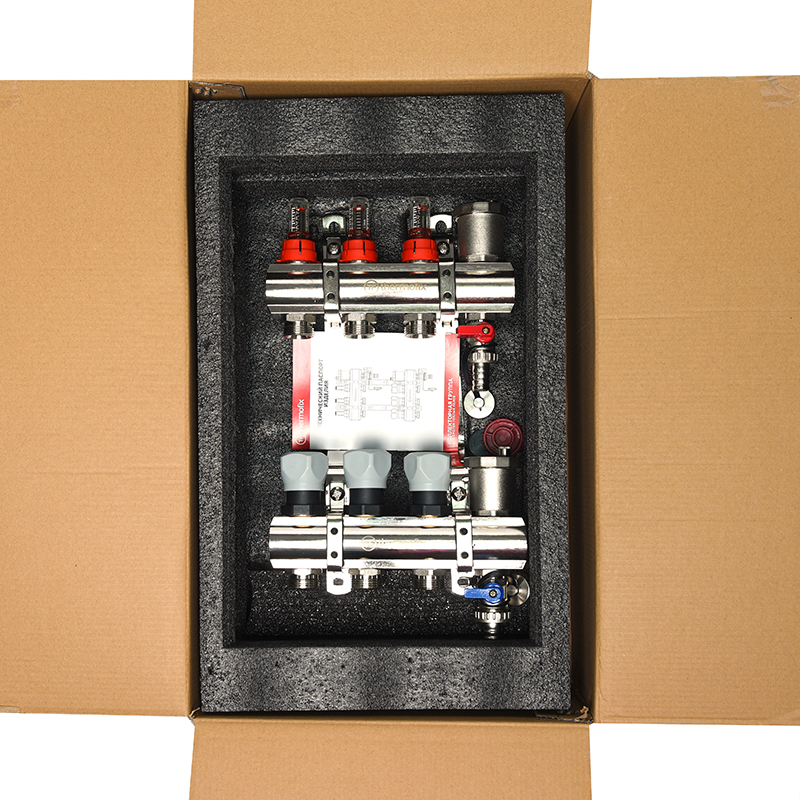 Каждая из труб системы подключается к коллектору, что позволяет контролировать поток теплоносителя индивидуально в каждом циркуляционном контуре.