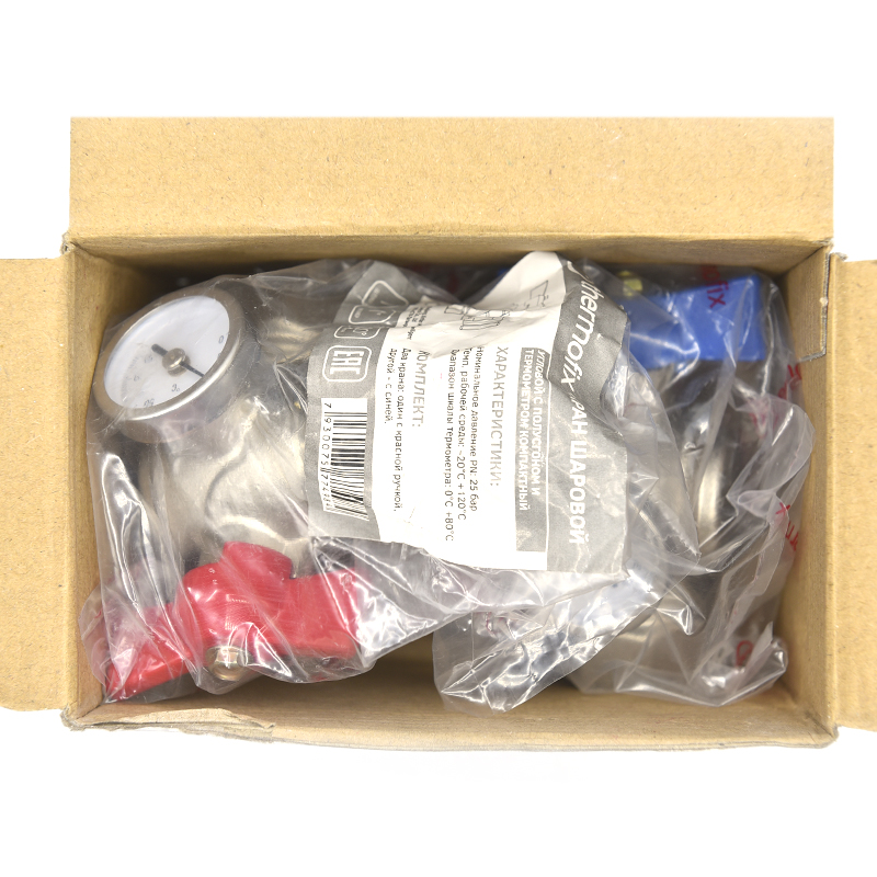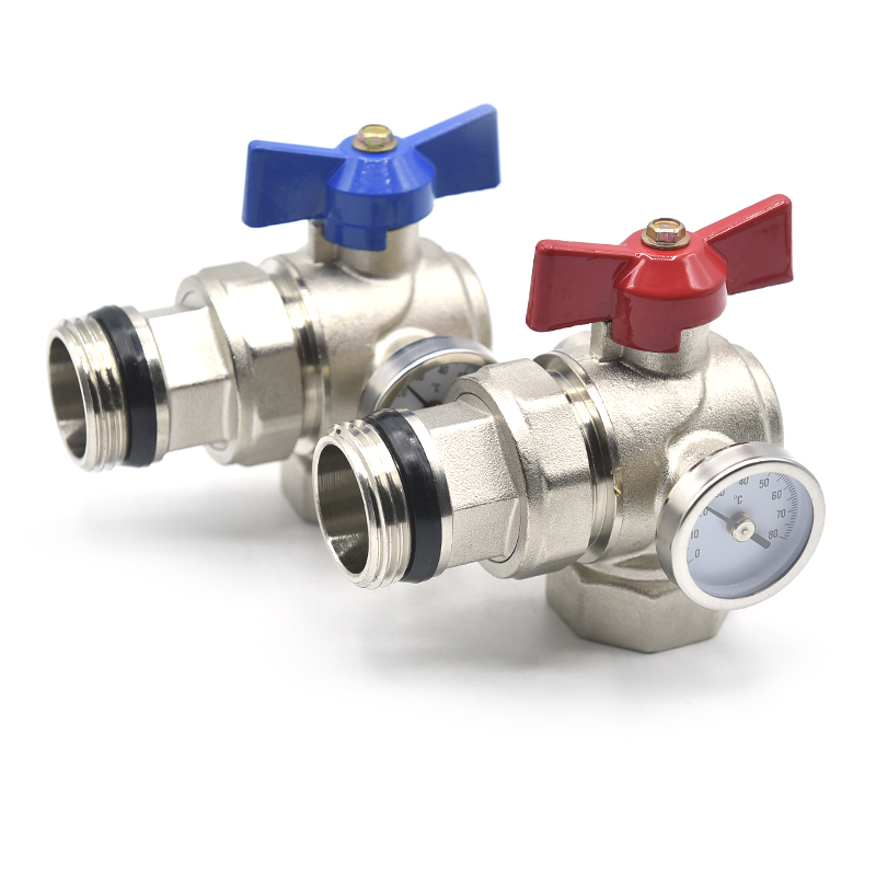 Краны коллекторные угловые с термометром (компакт) 1"