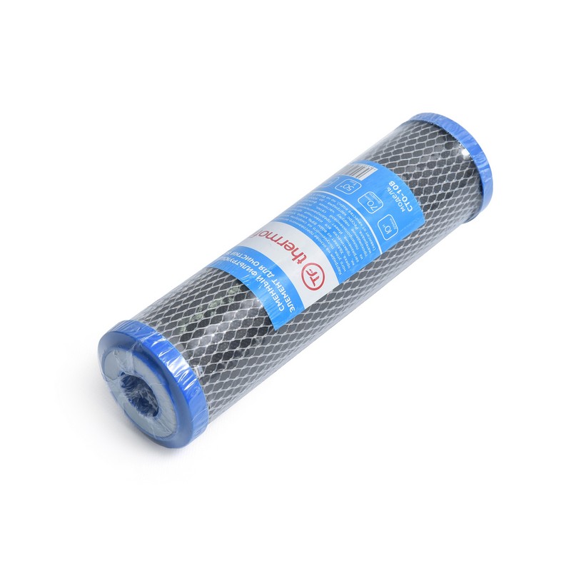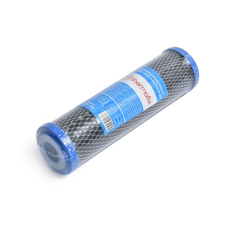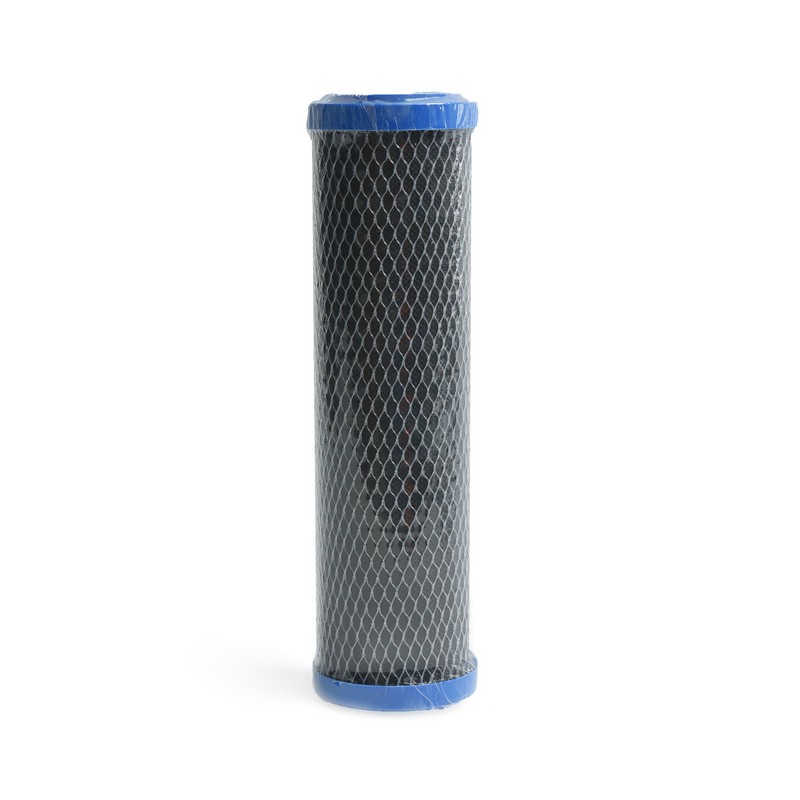 Картридж на основе прессованного активированного угля, полученного из скорлупы кокосового ореха. Удаляет из воды 99% хлора, хлорорганики, практически все известные органические загрязнения. Имеет предохранительный фильтр из полипропиленовой сетки, исключающий прохождение наружу частичек фильтрующего