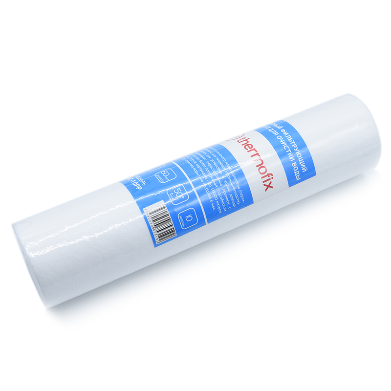 Изготовлен из спеченного полипропилена (сертифицированного для пищевой промышленности). Предназначен для установки в колбы длиной 10". Задерживает нерастворимые примеси с размером частиц более пропускной способности картриджа.