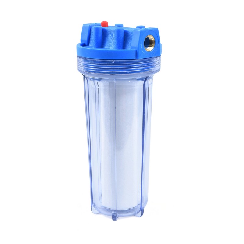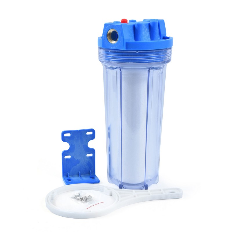 В комплект входят: сменный фильтрующий элемент из вспененного полипропилена, кронштейн для монтажа на стену и ключ для откручивания колбы.