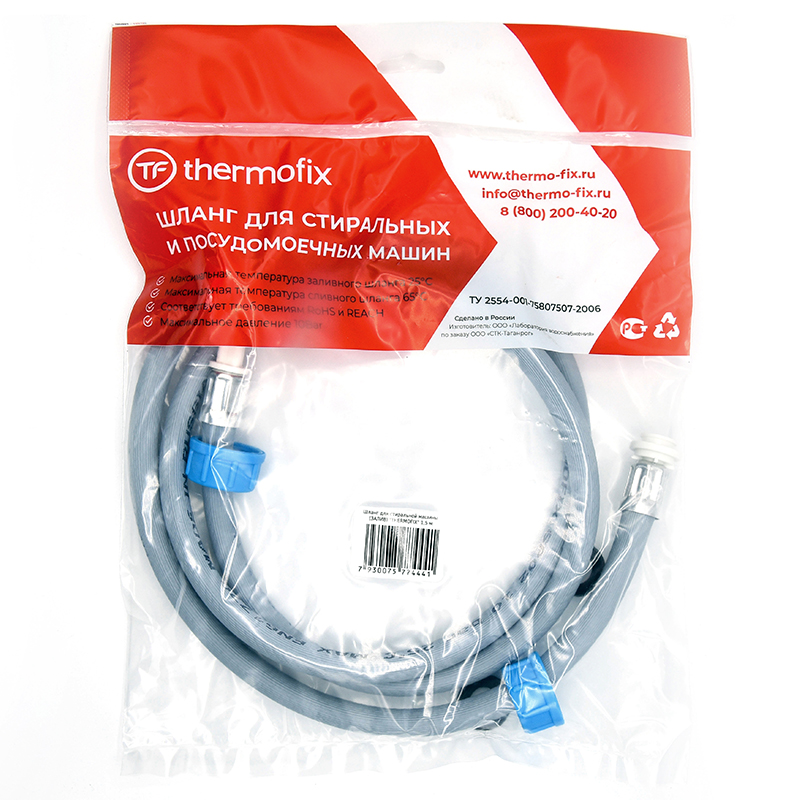Наливной шланг Thermofix используется для набора воды в крупную бытовую технику, работающую с водой: стиральные машины, посудомоечные машины. Шланг выполнен из прочного ПВХ, устойчивого к повреждениям, высоким температурам и сильному напору воды.