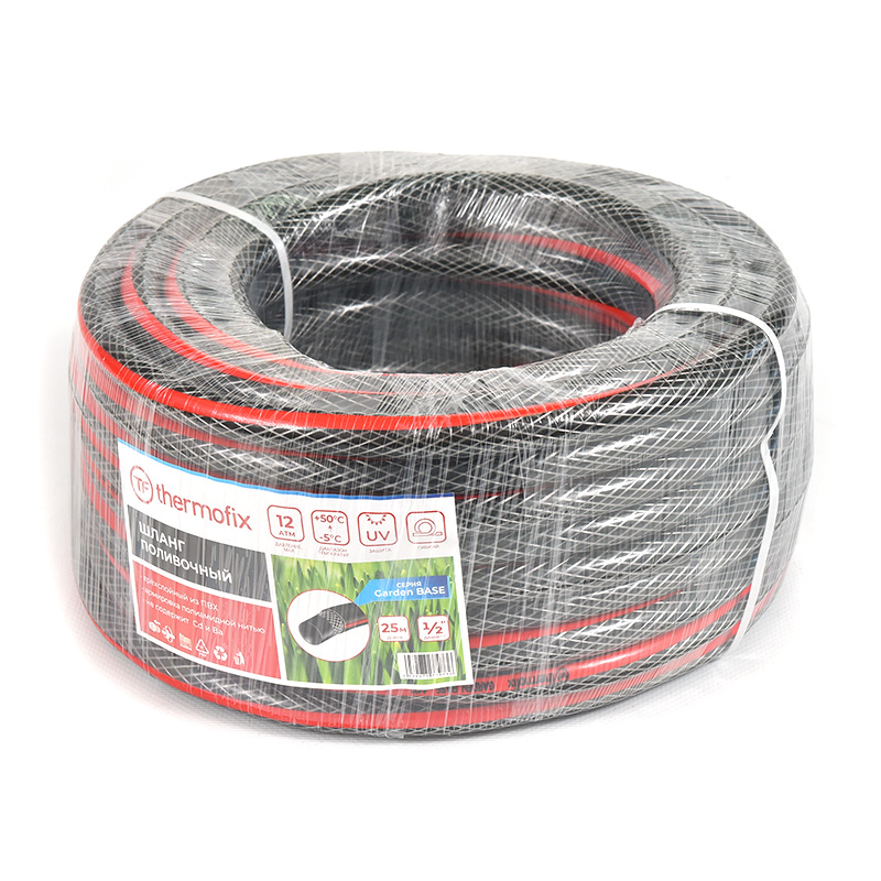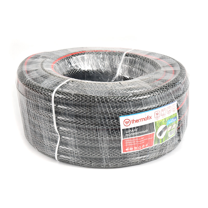 Садовые поливочные шланги торговой марки Thermofix изготовлены из ПВХ с дополнительным армирующим слоем из полиамидной нити. Они гибкие, эластичные и не подвержены воздействию ультрафиолетовых лучей, от которых на многих шлангах появляются трещины.